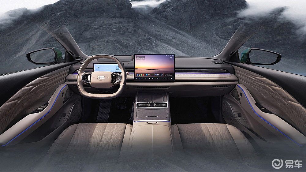 配备贯穿风格空调出风口和双悬浮屏,中控屏下方可外接物理按键,兼顾了科技感与实用性。
