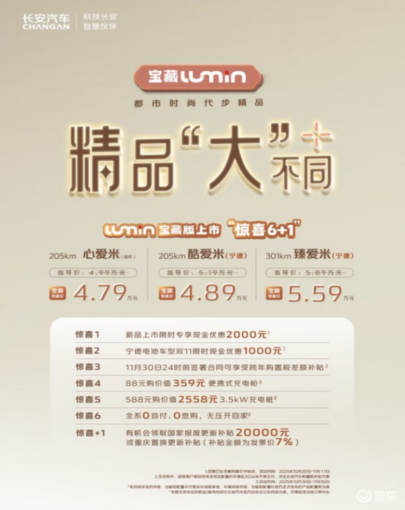 3293mm车身长度、0.91高宽比轿车体态、1980mm轴距。在这组看似冰冷的数据背后,是Lumin宝藏版对城市出行需求的精准把握。10月30日,这款已赢得50万用户信赖的微型电动车推出全新宝藏版,以4.79-5.59万元的惊喜价正式上市。 用户思维的胜利 在汽车产业迎来百年未有之大变局的今天,一款产品的成功不再仅仅依赖于技术参数堆砌。Lumin宝藏版从用户反馈中汲取创新灵感,完成了一次从“工程师造车”到“用户造车”的理念转变。 新车增加的刹车辅助、牵引力控制、车身稳定系统等安全功能,直指用户城市出行的痛点。这些升级并非简单配置叠加,而是基于真实用户驾驶数据的精准改进。 Lumi…