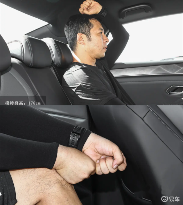 然而就实际的空间体验来说,身高在1米75的男性用户,坐在后排保持正常的坐姿,零跑B01的腿部空间还更宽敞。这是因为零跑B01具有同级较大的得房率,其得房率为86%,而秦L EV只有83%。