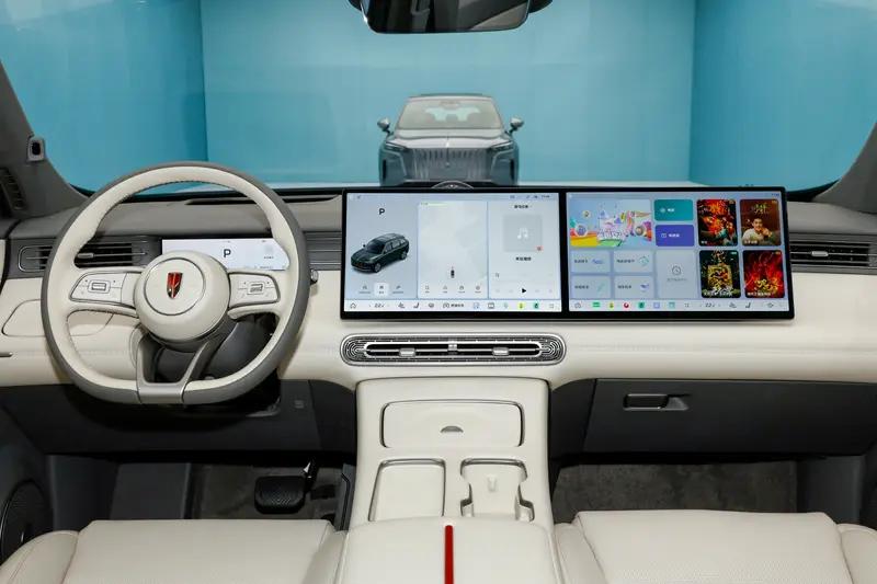 内饰方面,红旗HS6 PHEV采用了云杉灰与象牙白组成的林雪白配色,显得清新典雅。新车在红旗车型中首次采用了中控与副驾双连屏设计,迎合当下智能化需求。而屏幕下方,新车还加入了带盖板的储物格、手机无线充电面板以及水杯架。