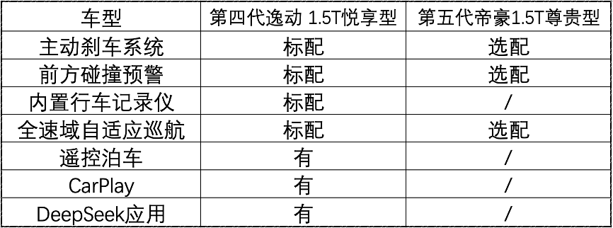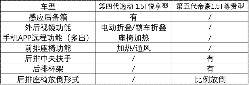 以上就是两款车几乎所有的差异化配置的介绍了,表面上看起来帝豪除了在空间以及后排乘坐舒适性上有更大的优势,其余都是逸动更具优势,并且还涉及一些核心功能。事实也的确如此,帝豪的整体配置要更高。