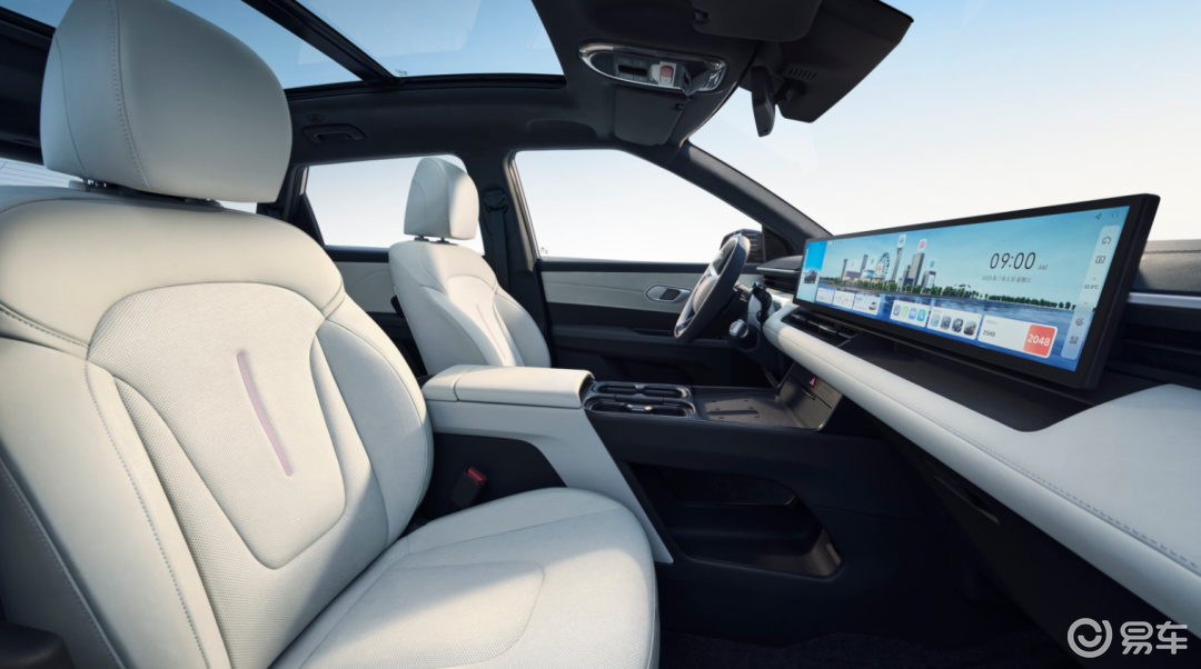 羿欧EO座舱最显著的特征是搭载了27英寸一体式双联屏,配合高通骁龙8295P车规级芯片,为信息娱乐系统提供了充足的运算能力。屏幕采用超薄设计,配合可将行车信息投影至前挡风玻璃的HUD抬头显示系统,共同构建了兼顾娱乐性与安全性的驾乘环境。