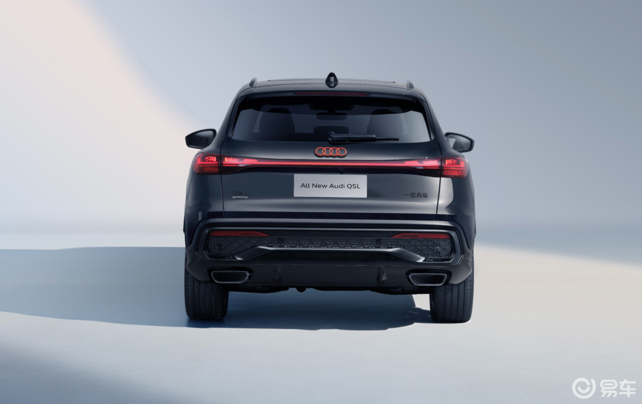 如果说上一代Q5L更多传递的是一种偏商务取向的“稳重感”,那么全新奥迪Q5L显然在向年轻化靠拢。前脸依旧保留了标志性的六边形大尺寸进气格栅,内部采用蜂窝网状结构,并加入可发光的LOGO,下包围两侧加入环形镀铬装饰,让整车在视觉上显得更宽、更低,也更有力量感。