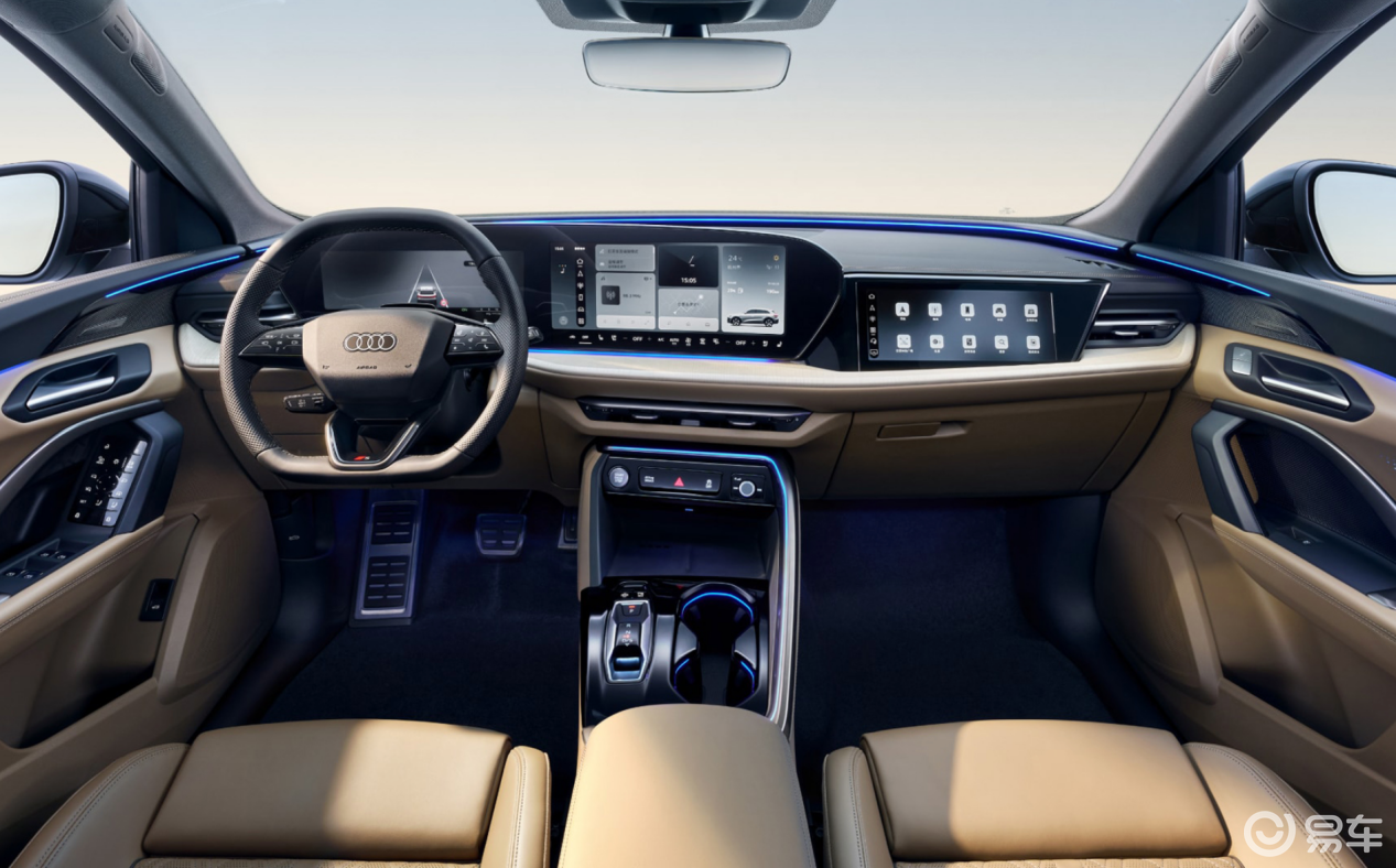 坐进车内,变化会比外观来得更直接。全新奥迪Q5L换装最新的家族式设计风格,11.9英寸液晶仪表+14.5英寸中控屏+10.9英寸副驾娱乐屏的组合将车内科技感拉满,内置全域生态系统,集成高德、爱奇艺、微信等主流车载应用,功能逻辑更贴近国内用户的使用习惯,同时还可选装13.1英寸W-HUD抬头显示。