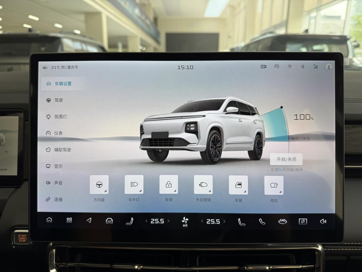 10.25英寸仪表+15.6英寸中控屏的组合,配合高通8155芯片、保证了功能的完备性,车机逻辑也经过优化更易上手。但客观而言,其屏幕分辨率、UI设计的美观度以及整体科技氛围的营造上,相较C16要稍逊一筹,并且在冰箱、后排娱乐屏等提升豪华感的配置上有所缺失。