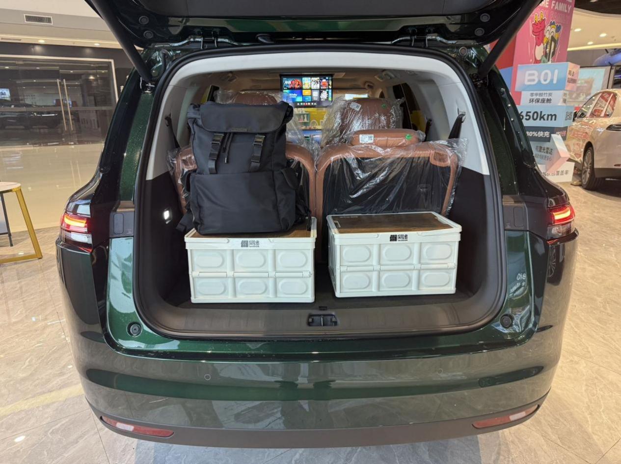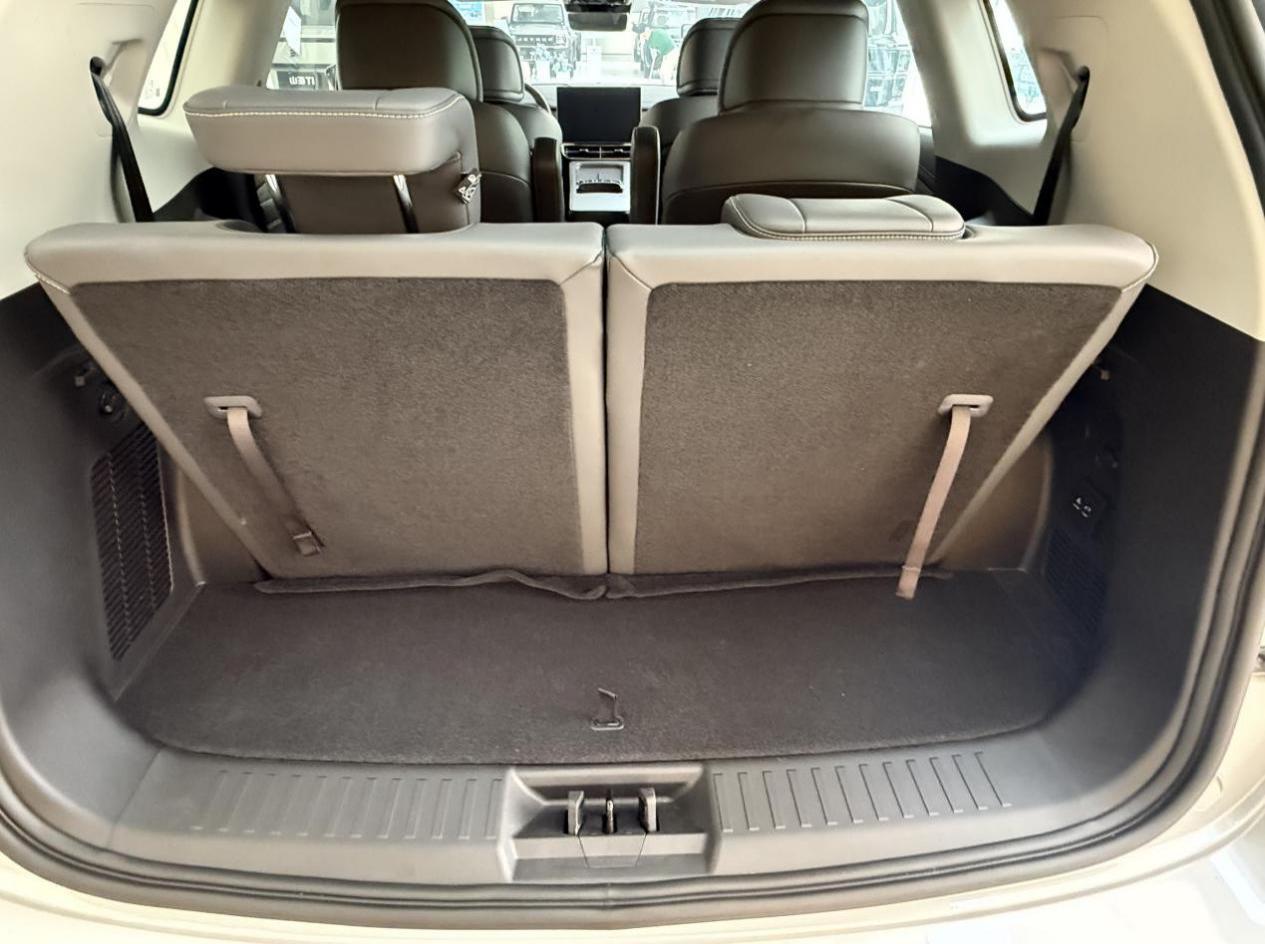 捷途山海L9作为插混SUV,受限于传统的车身布局,在六座满员时,后备箱剩余空间就比较有限,放置行李时需要精打细算、合理规划。不过,它的优势在于座椅放倒后的极限装载能力,其后备箱容积可扩展至1634L,在三车中数据最大,非常适合对极限载物有刚需的用户。