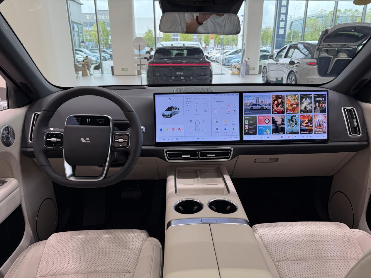 理想L6内饰的豪华感不言而喻,毕竟价格在那里摆着。和L7\8\9一样,从左到右分别是HUD抬头显示、方向盘触摸仪表屏,以及两块15.7英寸的中控屏标配高通骁龙8295P芯片。用料方面采用软性皮革、翻毛皮等材质包裹,做工精致,皮质触感细腻。冰箱彩电大沙发营造出极强的豪华感和家庭温馨感。