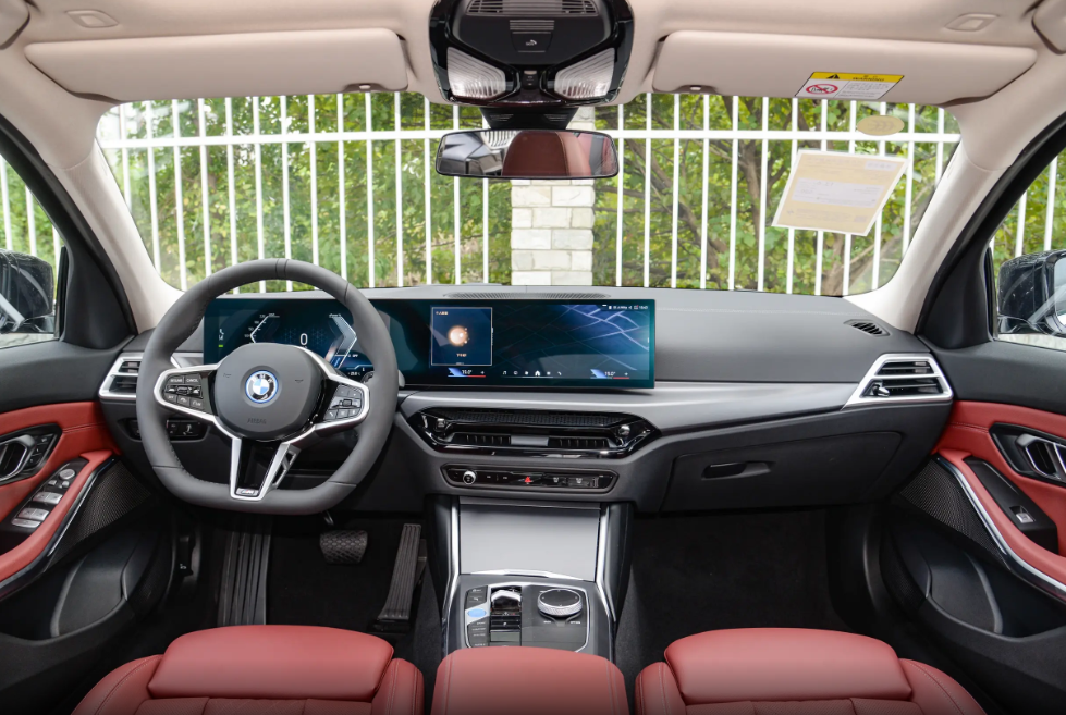 内饰依旧是宝马家族经典设计风格,仪表盘和中控屏组成当前常见的曲面大联屏,集成市面上主流科技配置,虽不算丰富,但应对日常出行无压力。造型标准的三辐式方向盘握感饱满,方向盘阻尼均匀,这点确实彰显出造车大厂该有的水准。车内保留了使用频率比较高的物理按键,遗憾的是内饰用料一般,包裹了不少硬塑材质。